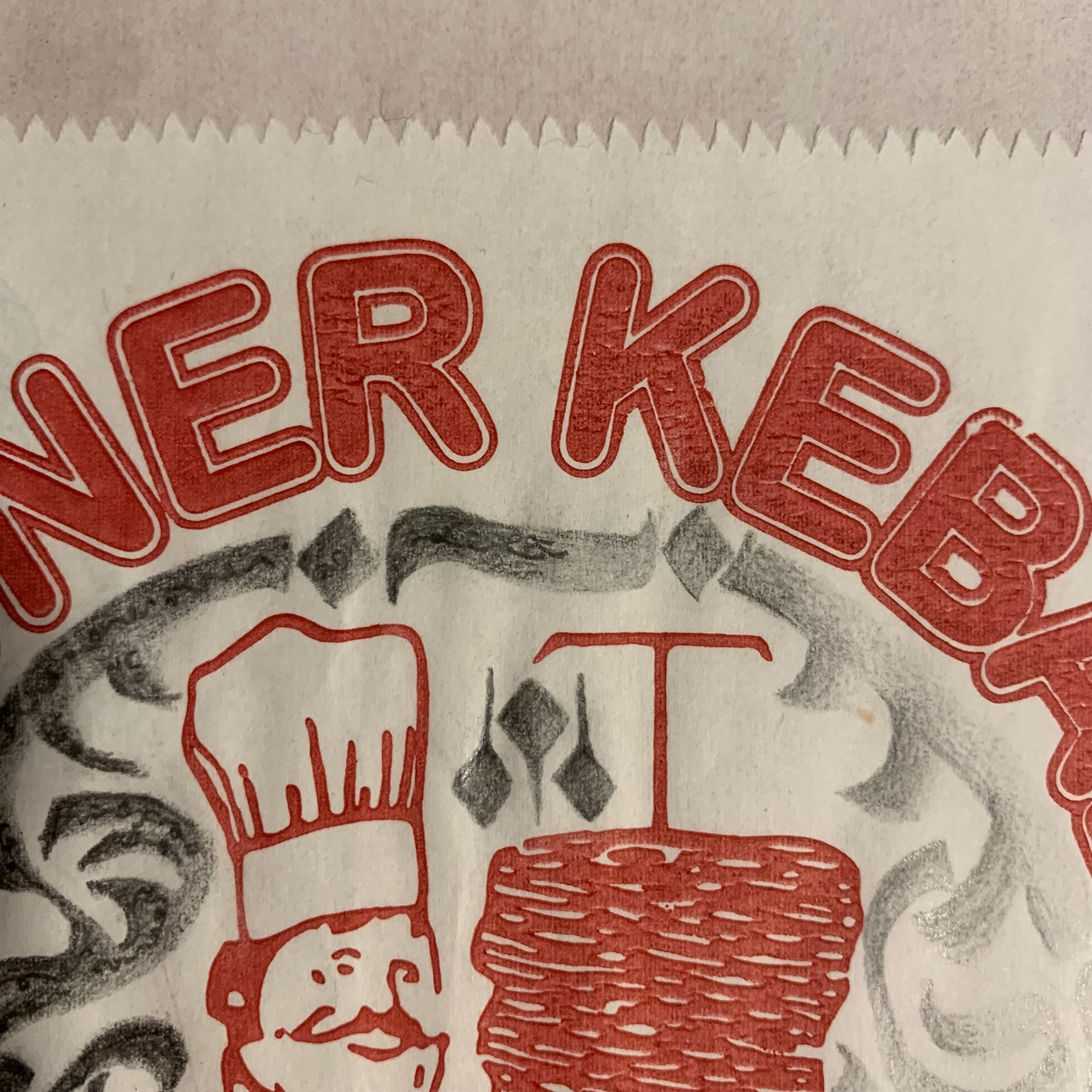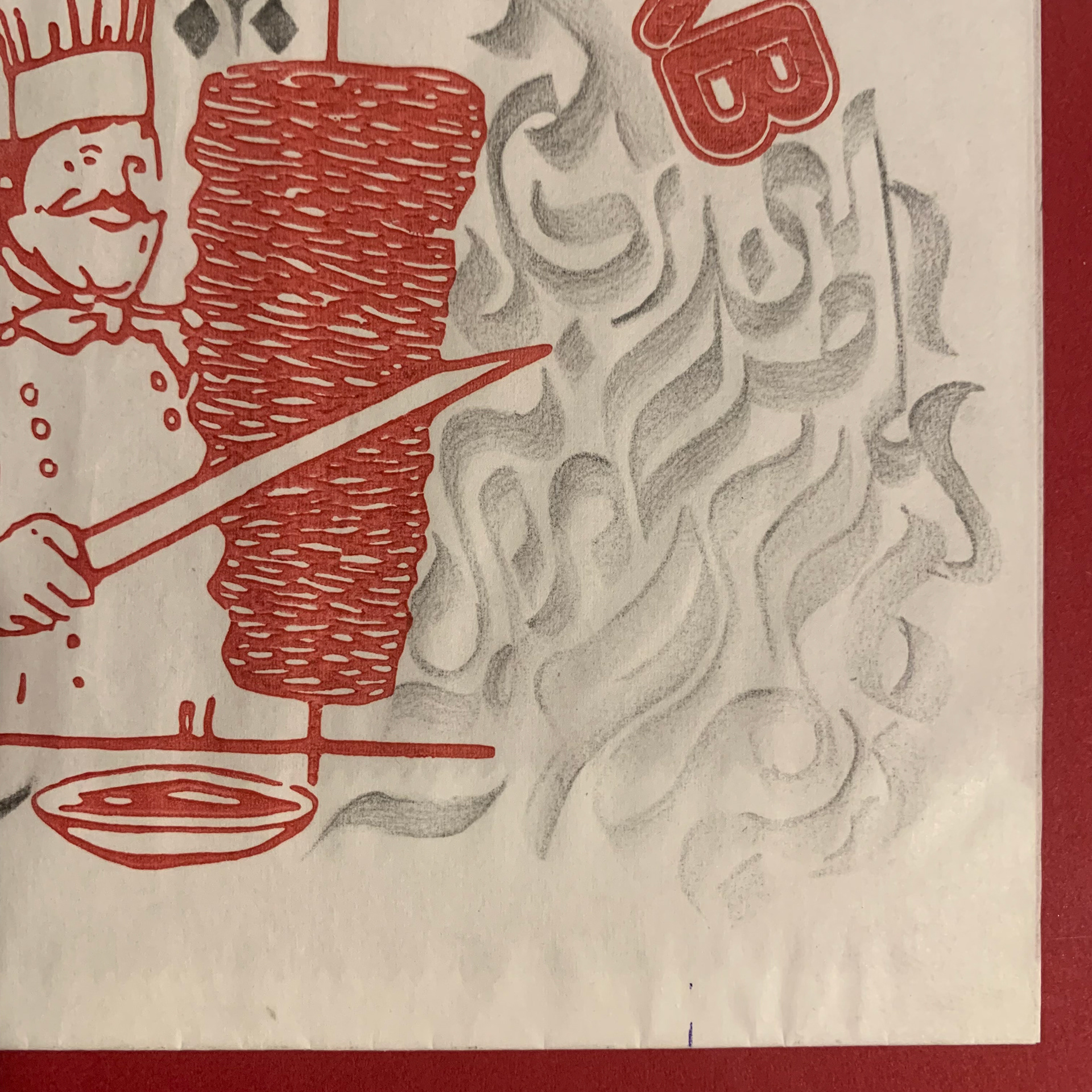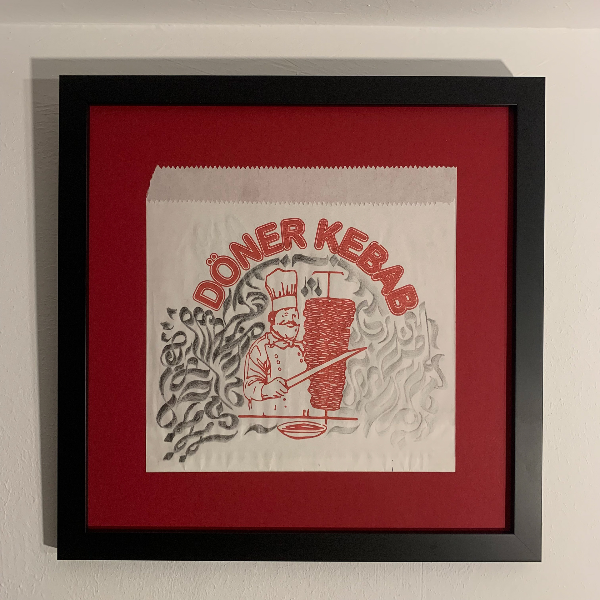 Graphite on upcycled Döner Kebab wrapping