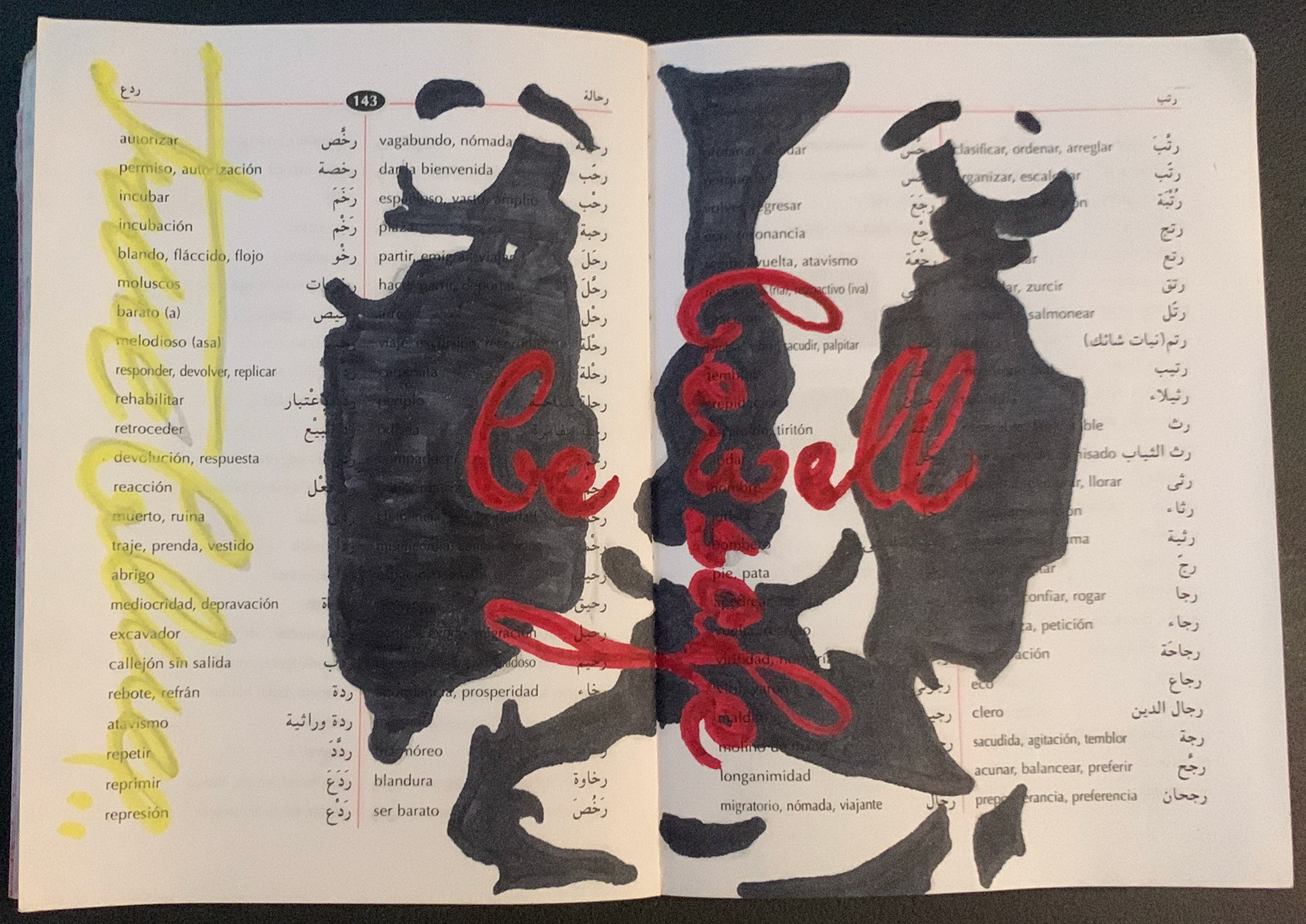 Permanent marker on arabic - spanish dictionary